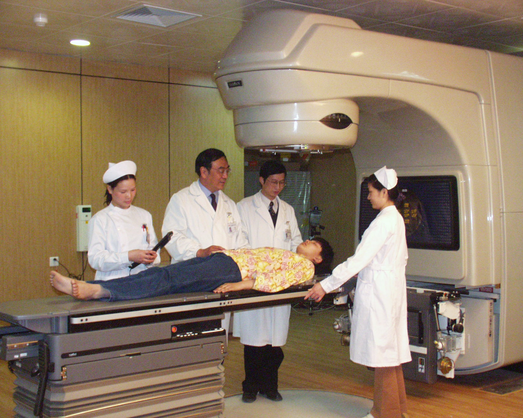 4.放射治疗科(放疗科):年收治新病人3000余人,其中,鼻咽癌、食管癌、肺癌的放疗效果均处于国内领先地位。作为江苏省肿瘤放疗中心,在三维调强治疗鼻咽癌、食管癌方面有明显优势;三维适形放疗同期化疗治疗晚期非小细胞肺癌、局部晚期食管癌诱导化疗后放化疗与后程加速器分割放疗的临床应用,提高了肿瘤病人的近、远期疗效。三维适形调强放疗结合CT导向微创手术治疗脑胶质瘤为治疗肿瘤提供了新的手段。