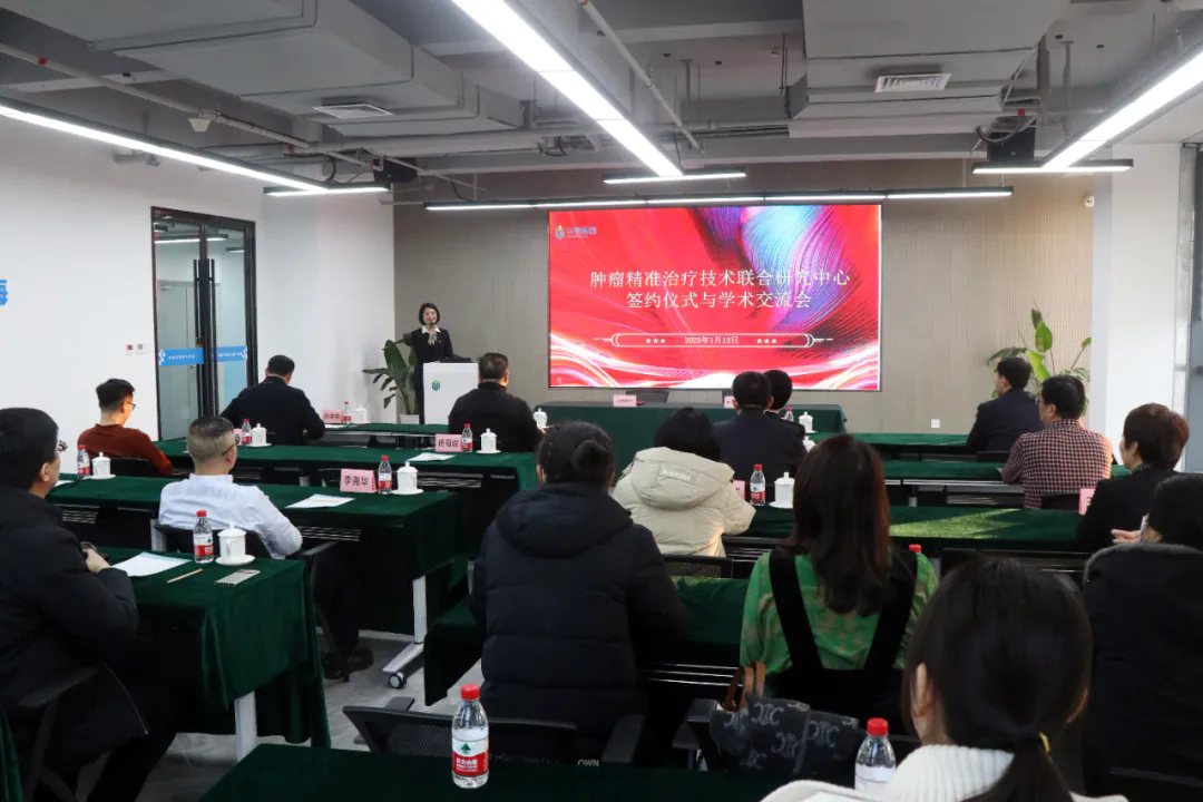 1月13日,肿瘤精准治疗技术联合研究中心签约暨学术交流会在智慧谷服务贸易产业园成功举办。经开区党工委委员、威海智慧谷投资运营有限公司党委书记、董事长王利辉,经开区科技创新局局长沈春升,社会事业局副局长、卫生健康管理服务中心主任王祖胜出席活动。中科院博士团队专家代表聂凌虎博士,华康拜尔贝克细胞健康科技(山东)有限公司总经理孙炜伟,威海市医学会肿瘤学专业委员会主任委员杨福俊,威海市医学细胞生物学专业委员会主任委员张道强,中国人民解放军联勤保障部队第970医院(威海院区)预癌抑癌门诊主任董桂芝等专家参加活动。
